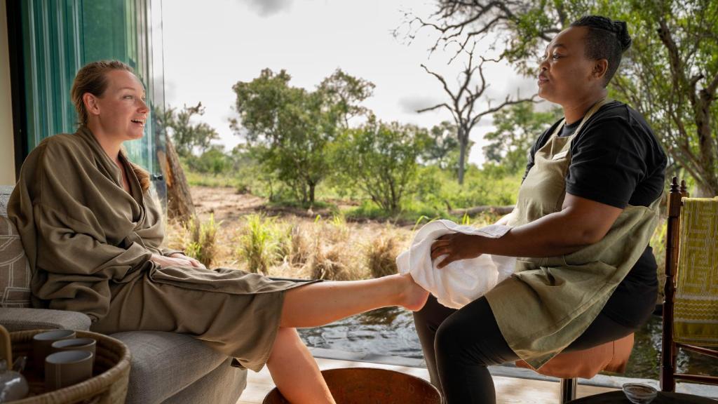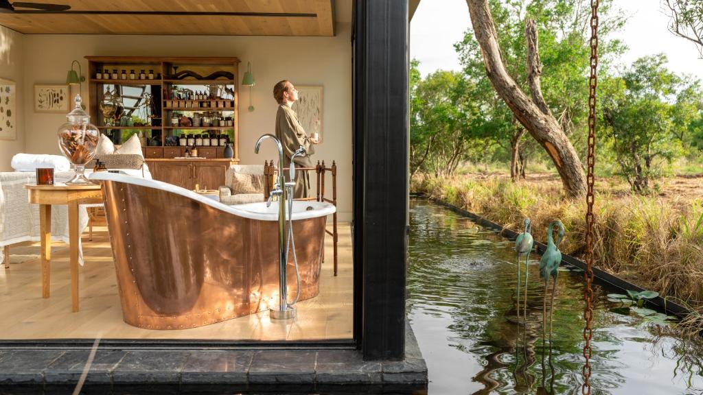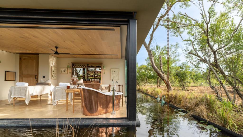 Elegant Accommodation: Monwana in Thornybush Game Reserve offers a 5-star lodge experience with spa facilities, a fitness centre, sun terrace, restaurant, bar, and a year-round outdoor swimming pool. Free WiFi is available in public areas.
